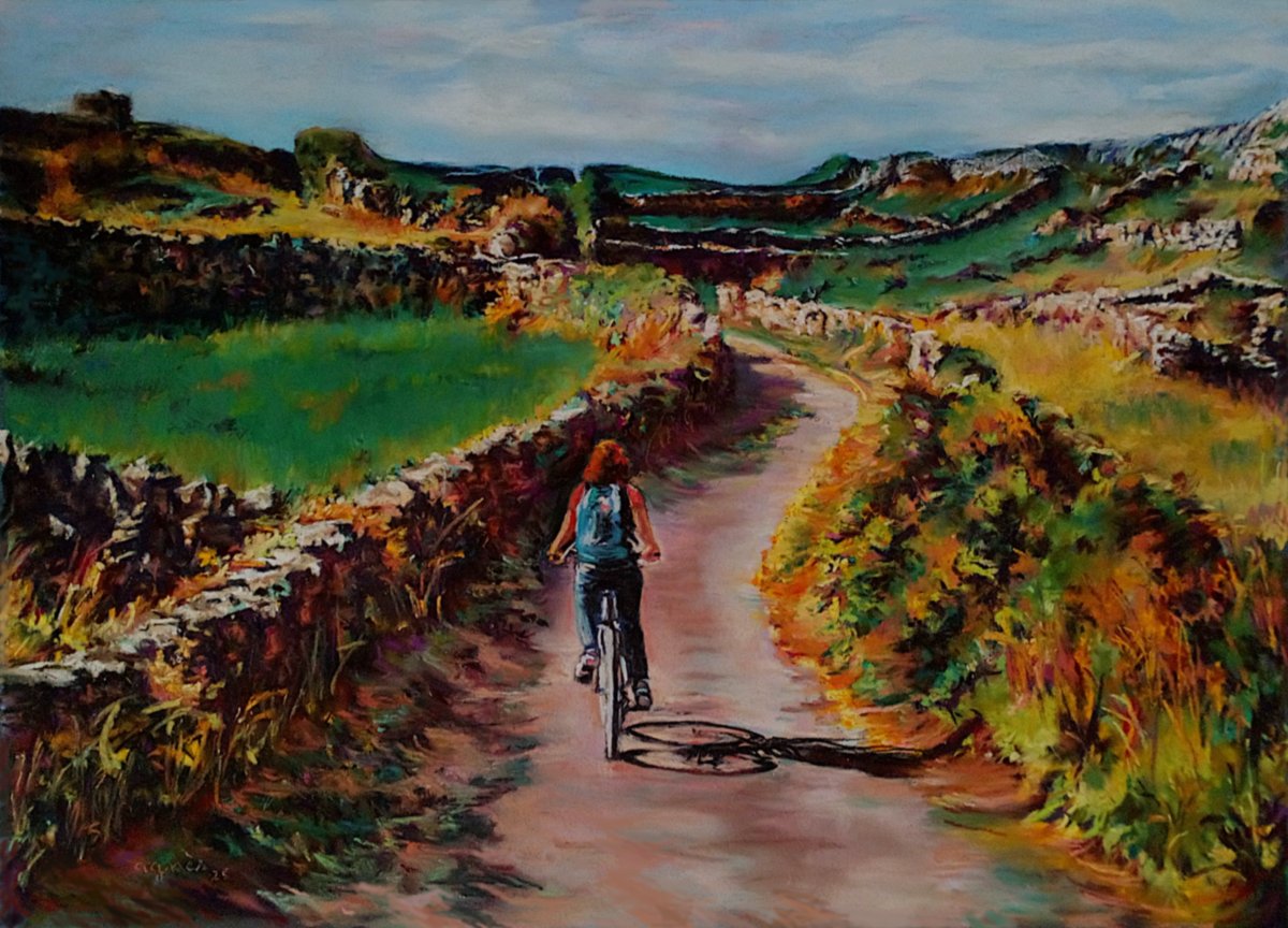 À bicyclette sous le soleil irlandais - Irlande - Pastel ©agnès